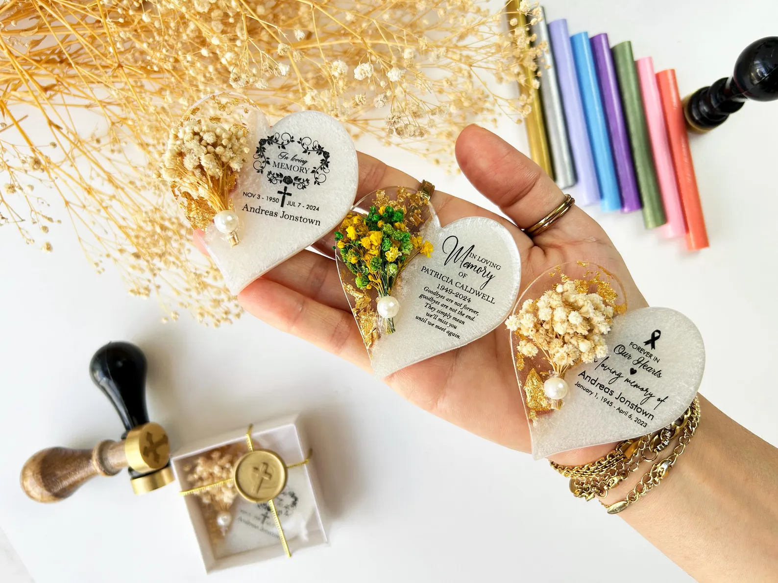 Personalized Celebration of Life Magnet Favors: Epoxy Resin Keepsake, Funeral Memorial Favors, Gifts, Souvenir
